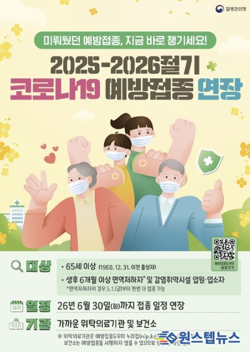 이번 연장 대상은 2025-2026절기 코로나19 미접종자와 기접종자 중 면역저하자다. 특히 면역저하자는 일반인보다 면역 유지 기간이 상대적으로 짧은 점을 고려해 최소 접종 간격 90일을 준수하면 연장 기간인 5월 1일부터 6월 30일까지 1회 추가접종이 가능하다.