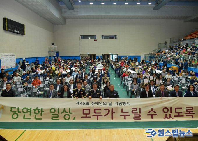 원스텝뉴스 이병희 기자 | 김포시가 17일 김포시장애인단체연합회 주관으로 김포시민회관 실내체육관에서 제46회 김포시 장애인의 날 기념행사를 개최했다고 밝혔다.