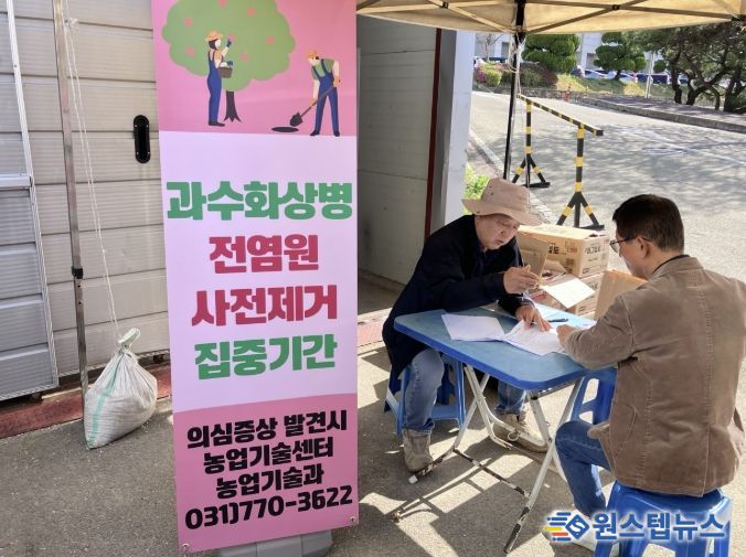 이에 군은 개화기 사용 등록 약제를 활용한 단계적 방제 체계를 바탕으로 재배 농가에 약제를 공급하고, 시기에 맞춘 적기 살포를 안내하고 있다. 이번 조치는 개화기 감염원을 사전에 차단하고 안정적인 과원 관리를 지원하기 위해 추진됐다.