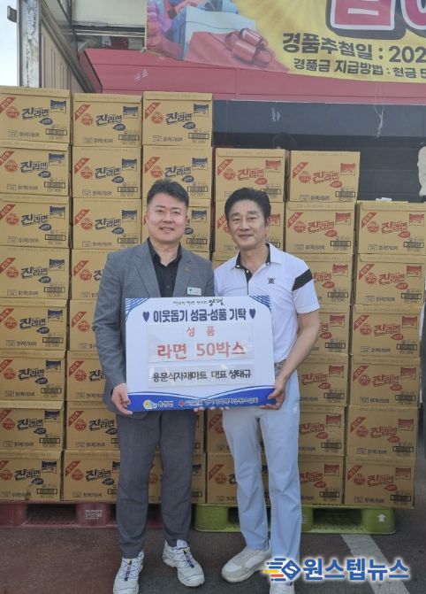 원스텝뉴스 이병희 기자 | 양평군 용문면은 지난 19일, 용문면 소재 용문식자재마트가 관내 어려운 이웃을 위해 라면 50박스를 기부했다고 밝혔다.