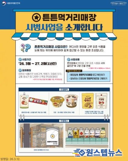 한편, ‘튼튼먹거리 매장’ 위치는 식품안전나라 누리집 내 ‘우리동네 식품안전정보’ 지도에서 확인할 수 있다.