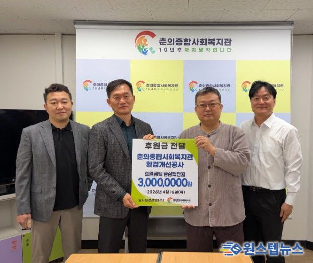 원스텝뉴스 이병희 기자 | 도시환경실업(주)는 지역사회 복지환경 개선과 나눔 문화 확산을 위해 춘의종합사회복지관에 환경개선공사 후원금 300만원을 전달했다. 이번 후원은 복지관 시설 환경을 개선해 지역 주민들이 보다 안전하고 쾌적한 환경에서 복지서비스를 이용할 수 있도록 지원하기 위해 마련됐다.