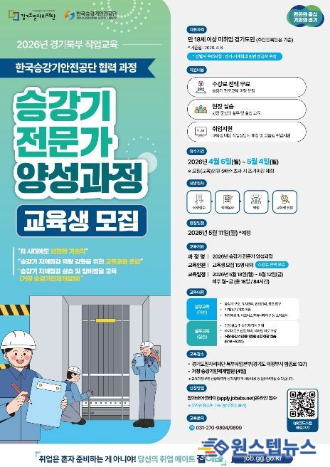 원스텝뉴스 이병희 기자 | 경기도일자리재단은 승강기 전문 인력 양성을 통해 일자리 문제 해결과 지역경제 활성화를 추진하고자 ‘2026년 승강기 전문가 양성 과정’ 교육생을 모집한다고 21일 밝혔다.
