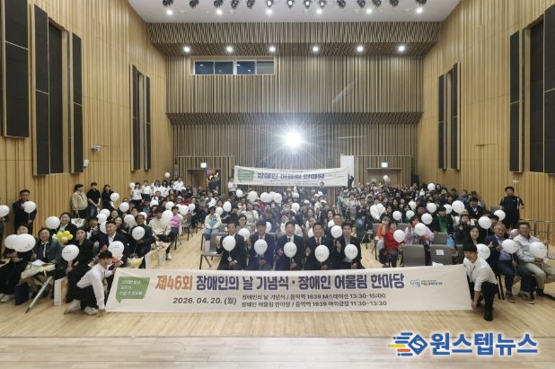 원스텝뉴스 천규영 기자 | 가평군은 20일 가평군장애인복지관 주관으로 ‘제46회 장애인의 날 기념식 및 화합 행사’를 개최했다. 음악역1939에서 열린 이번 행사에는 장애인과 시설·단체 관계자, 지역 주민 등 400여 명이 참석해 의미 있는 소통의 시간을 가졌다.