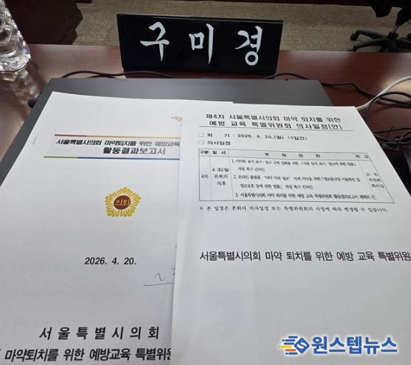 원스텝뉴스 이병희 기자 | 서울특별시의회 기획경제위원회 구미경 시의원(국민의힘, 성동구 제2선거구)이 참여한 '서울특별시의회 마약퇴치를 위한 예방교육 특별위원회'가 4월 20일 교육위원회 회의실에서 제4차 회의를 개최하고 주요 안건을 의결했다.