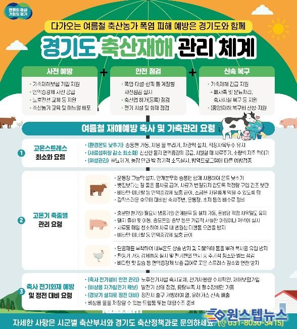 원스텝뉴스 이병희 기자 | 경기도가 올여름 무더위로부터 축산농가를 보호하기 위해 예산 지원과 현장점검을 아우르는 전방위적 대응에 나섰다.