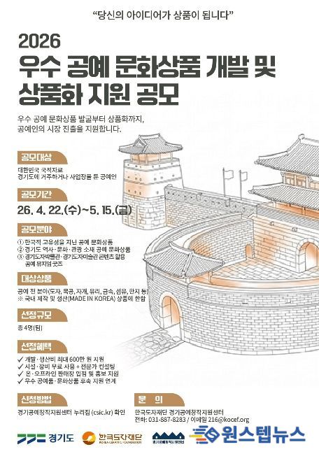 원스텝뉴스 이병희 기자 | 한국도자재단이 ‘2026 공예 문화상품 개발 및 상품화 지원 사업’을 본격 추진한다고 22일 밝혔다.