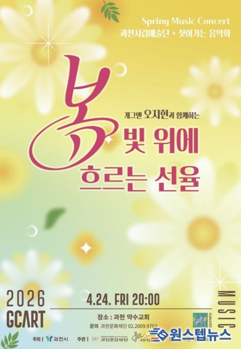 한편, ‘봄빛 위에 흐르는 선율’은 사전 예약 없이 누구나 무료로 관람할 수 있는 열린 공연으로, 과천의 봄밤을 아름다운 선율로 물들일 것으로 기대된다.