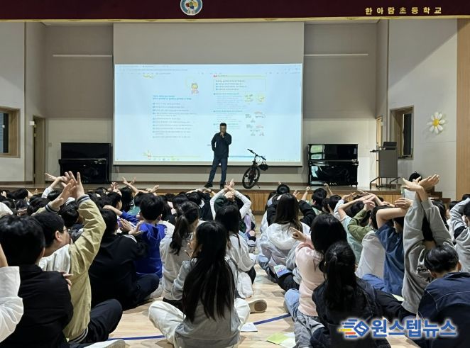 원스텝뉴스 이병희 기자 | 광주 한아람초등학교는 4월 20일부터 21일까지 이틀간 광주시 자전거연맹과 협력해 4학년 학생 223명을 대상으로 ‘찾아가는 자전거 안전교육’을 실시했다.