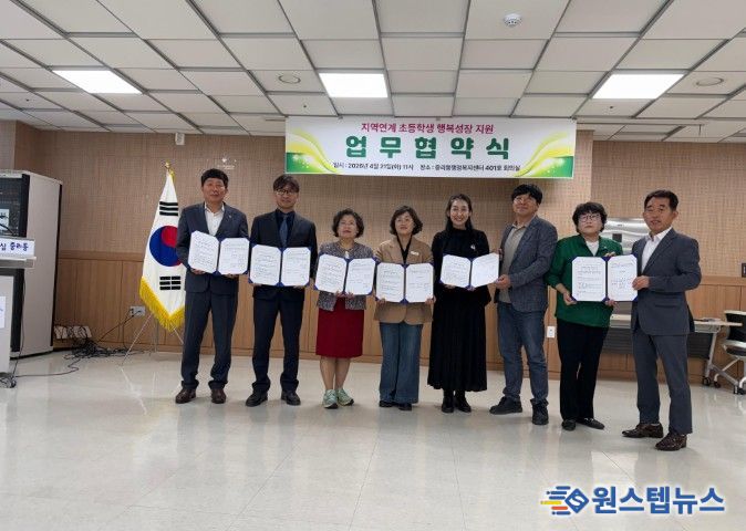 원스텝뉴스 이병희 기자 | 이천시 중리동은 21일 중리동행정복지센터에서 지역사회와 학교가 함께하는‘지역연계 초등학생 행복성장 지원 협약식’을 개최하고, 지역 아동의 건강한 성장과 교육복지 향상을 위한 협력체계를 구축했다.