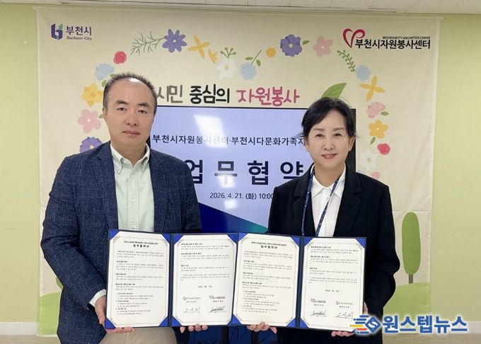 원스텝뉴스 이병희 기자 | 부천시다문화가족지원센터는 4월 21일 부천시자원봉사센터와 자원봉사 활성화 및 다문화가족의 지역사회 참여 확대를 위한 업무협약(MOU)을 체결했다고 밝혔다.
