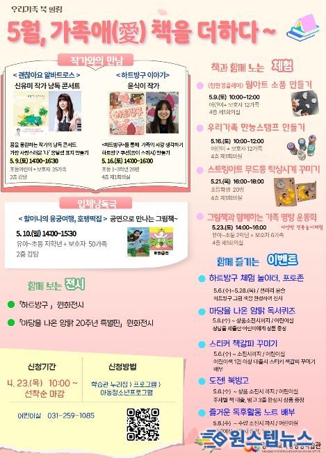 원스텝뉴스 이병희 기자 | 경기도교육청평생학습관이 가족 사랑 실천과 가족 간 유대감 증진을 위해 가족 독서체험 행사인 䃵월, 가족애(愛) 책을 더하다’를 운영한다.