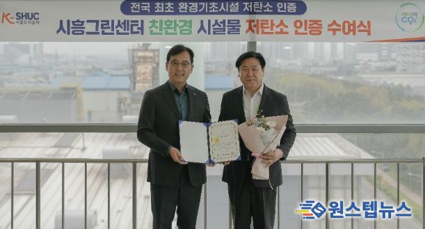 원스텝뉴스 이병희 기자 | 시흥도시공사는 지난 4월 21일 도시재생안전협회로부터 시흥그린센터 ‘친환경 시설물 저탄소’ 인증을 획득하고 인증식을 진행했다고 밝혔다. 이번 성과는 기관 단위가 아닌, 전국 환경기초시설 중 최초로 ‘시설물 단위 사업장’의 저탄소 인증을 받은 사례로, 환경 분야의 새로운 이정표를 세웠다는 평가를 받고 있다.