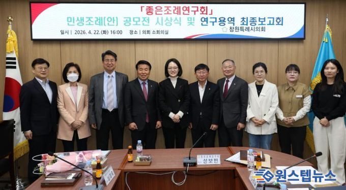 원스텝뉴스 이병희 기자 | 창원특례시의회 좋은조례연구회는 22일 최종보고회를 열어 시민들의 삶의 질을 높이고자, 시민들이 직접 제안한 우수 조례안 아이디어를 공유했다.