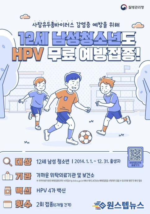이번 조치는 기존 여성 청소년 중심으로 운영되던 HPV 예방접종 지원을 남성 청소년까지 확대해 감염 확산을 줄이고, 자궁경부암과 항문암, 생식기 사마귀 등 질환 예방 효과를 높이기 위한 것이다.