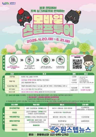 원스텝뉴스 이병희 기자 | 남양주시는 역사·힐링·건강·체험을 결합한 ‘2026년 상반기 모바일 스탬프투어’를 오는 6월 21일까지 운영한다고 23일 밝혔다.