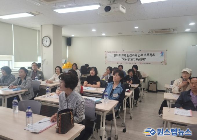 ‘은퇴자, 지역 환경교육 인재 프로젝트 Re-Start 인생 2막’은 경기도자원봉사센터 공모사업에 선정돼 사업비 420만 원을 지원받아 운영하는 사업이다. 이날 예비 교육에는 은퇴자 20여 명이 참석해 환경교육 강사의 역할과 활동 방향을 안내받고, 향후 교육과정과 자원봉사 계획을 공유했다.