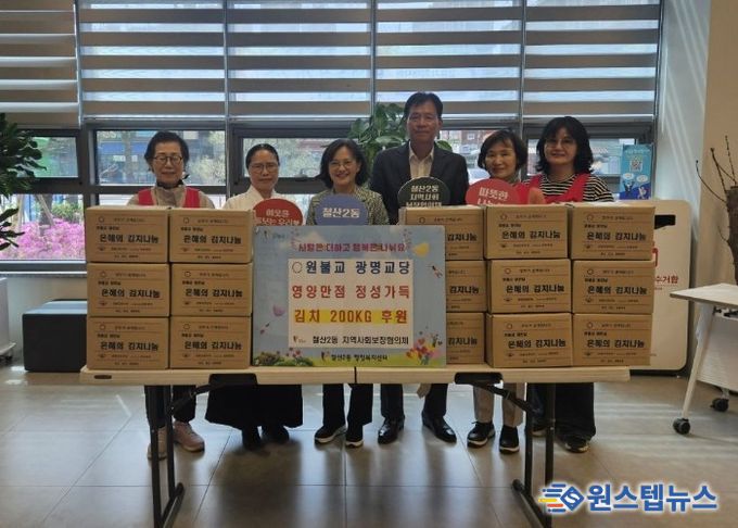 이번 후원은 원불교 광명교당 교도들이 어려운 이웃을 돕고자 정성껏 직접 담근 것으로, 지역사회 나눔 문화 확산에 뜻을 더했다.