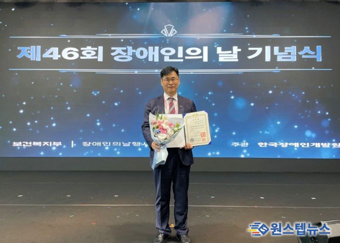 원스텝뉴스 이병희 기자 | 하남시장애인복지관 민복기 관장이 4월 20일 열린 제46회 장애인의 날 기념 유공자 포상에서 대통령 표창을 수상했다.