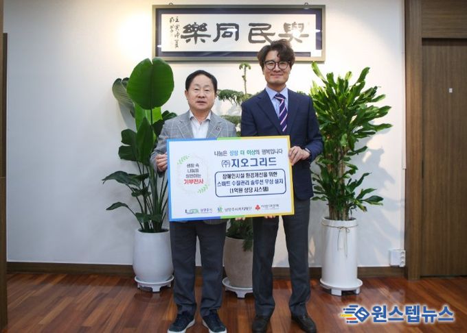 원스텝뉴스 이병희 기자 | 남양주시는 23일 ㈜지오그리드가 취약계층 생활환경 개선을 위해 관내 장애인복지시설 신망애재활원에 1억 원 상당의 스마트 수질 관리 및 정수 시스템 ‘BLOS’를 지원했다고 밝혔다.