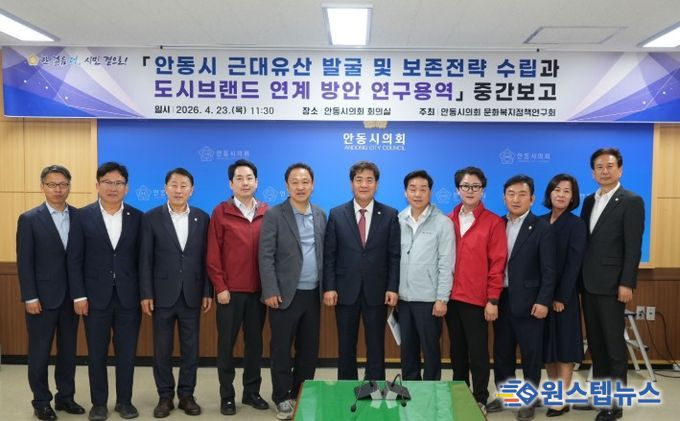 원스텝뉴스 이병희 기자 | 안동시의회 문화복지정책연구회는 23일 안동시의회 회의실에서‘안동시 근대유산 발굴 및 보존 전략 수립과 도시브랜드 연계 방안 연구용역’중간보고회를 개최하고, 연구 추진 현황을 점검하는 한편 향후 정책 방향에 대해 논의했다.