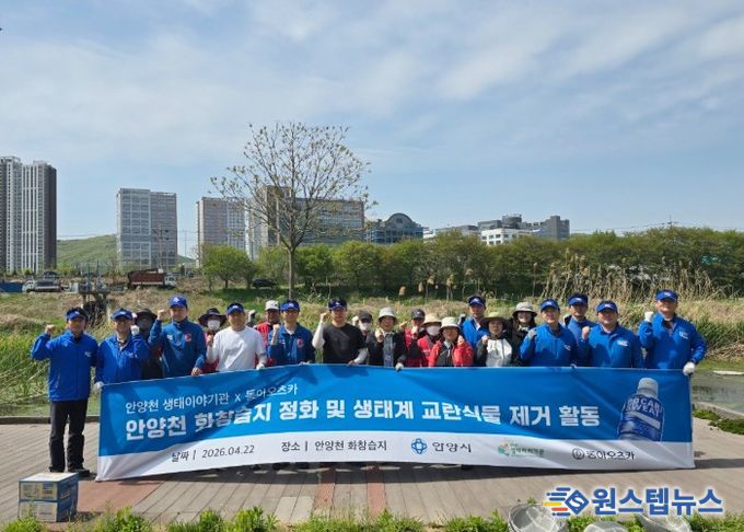원스텝뉴스 이병희 기자 | 안양시는 ‘지구의 날’인 22일 동아오츠카와 함께 석수동 일대 안양천의 화창습지에서 환경 정화 활동을 펼쳤다고 23일 밝혔다.
