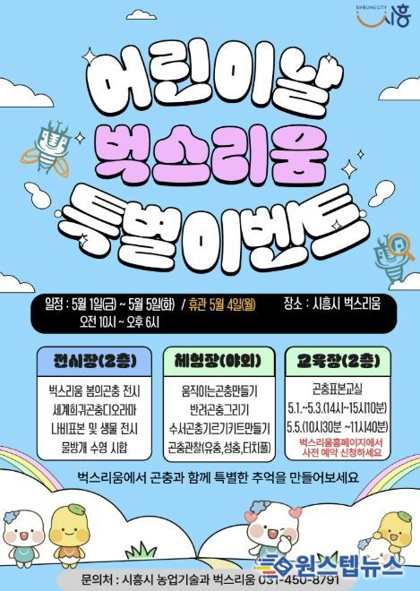 원스텝뉴스 이병희 기자 | 시흥시 곤충체험전시관 ‘벅스리움’은 어린이날을 맞아 아동과 가족이 함께 즐길 수 있는 ‘특별 프로그램’을 오는 5월 1일부터 5일까지 운영한다.