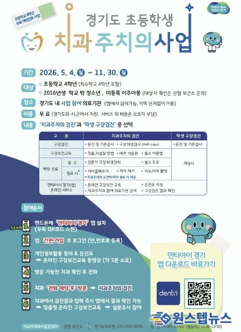 원스텝뉴스 이병희 기자 | 포천시보건소는 지역 내 아동의 구강건강 관리를 강화하기 위해 오는 5월 4일부터 11월 30일까지 ‘초등학생 치과주치의사업’을 추진한다.