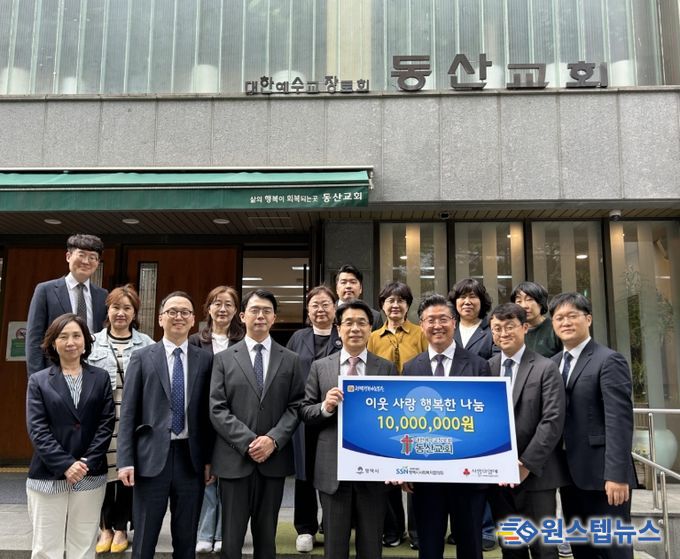 이에 평택행복나눔본부 황성식 나눔국장은 “어려운 시기에 이웃을 위한 따뜻한 나눔을 실천하신 동산교회와 성도분들께 깊이 감사드린다”며 “전달하신 소중한 성금은 꼭 필요한 분들께 의미 있게 사용해 지역사회에 희망을 전할 수 있도록 하겠다”라고 말했다.