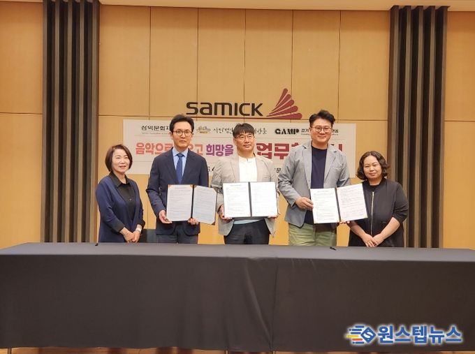 원스텝뉴스 이병희 기자 | 삼익문화재단, 사단법인 마을과사람들, 경기안성뮤직플랫폼은 지난 17일 서울 삼익악기 본사에서 ‘아동·청소년 문화예술교육 협력’을 위한 업무협약(MOU)을 체결했다고 밝혔다.