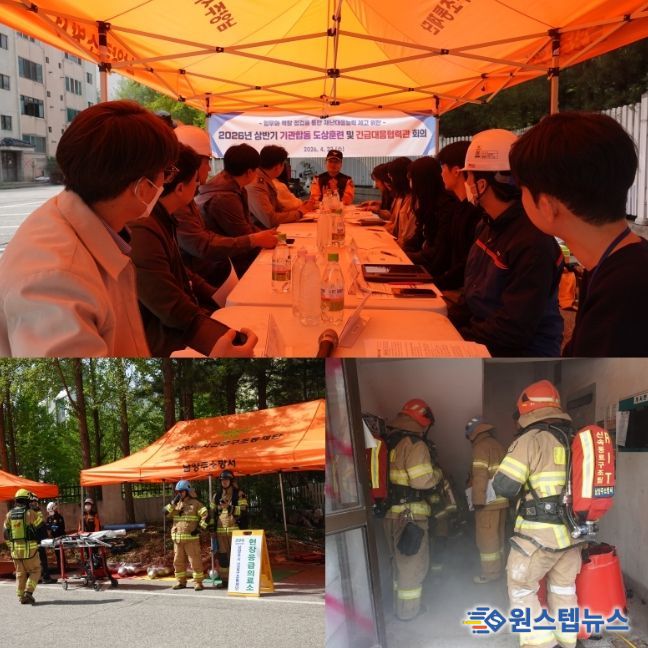 원스텝뉴스 이병희 기자 | 남양주소방서는 지난 22일 금곡동 재개발 아파트 일원에서 ‘2026년 상반기 기관합동 도상훈련 및 긴급대응협력관 회의’를 실시하고, ‘지하층 화재진압 및 인명구조 특별구조훈련’을 병행 추진했다고 밝혔다.