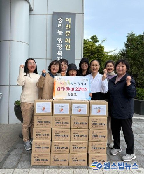 원스텝뉴스 이병희 기자 | 이천시 중리동행정복지센터는 원불교가 지역 내 어려운 이웃들을 위해 김치(5kg) 20박스를 기탁하며 따뜻한 나눔을 실천했다고 밝혔다. 이번 기탁은 경제적 어려움과 돌봄 공백 등으로 일상생활에 어려움을 겪고 있는 취약계층 이웃들에게 조금이나마 힘이 되고자 마련됐다.
