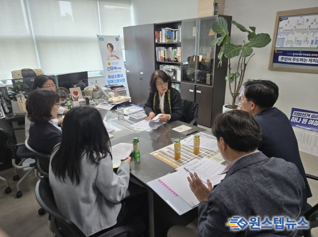 경기도의회 교육기획위원회 신미숙 의원(더불어민주당, 화성4)은 23일(목), 경기도의회에서 경기도교육청 평생교육과와 화성특례시 평생학습과 관계자를 만나 경기도교육청평생교육문화원 건립 추진을 위한 추진사항을 점검하고 협력방안을 모색했다.