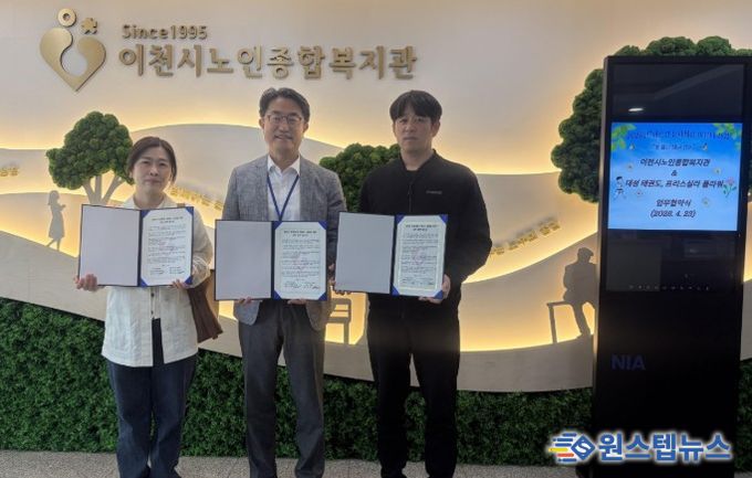 원스텝뉴스 이병희 기자 | 이천시는 지난 4월 23일, 이천시 노인종합복지관에서 대성태권도과와 프리스실라 플라워와 함께 지역사회 어르신들의 복지 증진과 통합적 지원 체계 구축을 위한 ‘어르신 문화체육 이음터사업’ 업무협약(MOU)을 체결했다고 밝혔다.