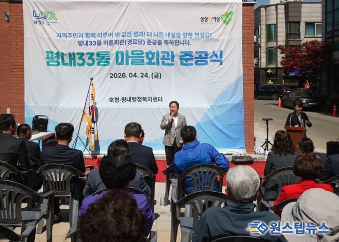 원스텝뉴스 이병희 기자 | 남양주시는 24일 평내동 588-19번지 일원에서 평내33통 마을회관 재건축사업 준공식을 개최했다고 밝혔다.