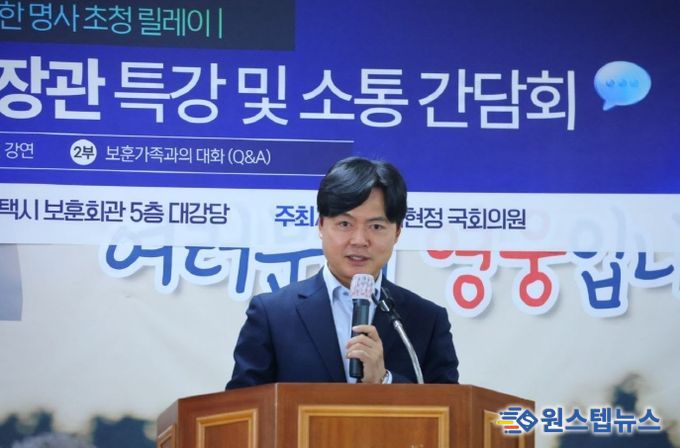 원스텝뉴스 이병희 기자 | 국회 정무위원회 소속 김현정 국회의원(더불어민주당, 평택시병)이 주최·주관한 ‘평택을 위한 명사 초청 릴레이 - 권오을 국가보훈부 장관 특강 및 소통 간담회’가 24일 오후 3시 평택시 보훈회관에서 개최됐다.