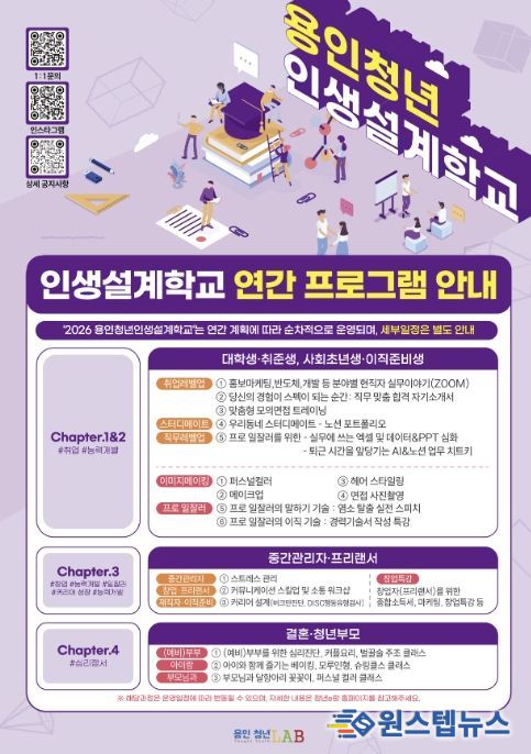 시 관계자는 “용인청년 인생설계학교는 청년의 특정 시기에 국한되지 않고 삶의 전반을 설계해 나가는 생애주기형 프로그램”이라며 “현재 다양한 단계의 교육이 운영되고 있는 만큼, 청년들이 각자의 단계에 맞는 과정을 통해 성장할 수 있도록 맞춤형 지원을 확대하겠다”고 했다.