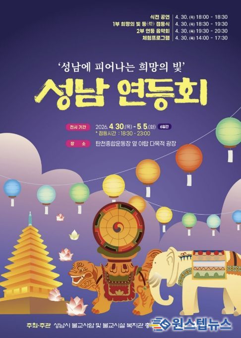 원스텝뉴스 천규영 기자 | ‘2026 성남 연등회’가 오는 4월 30일부터 5월 5일까지 엿새간 분당 탄천 야탑 다목적광장(탄천종합운동장 앞)에서 열린다.