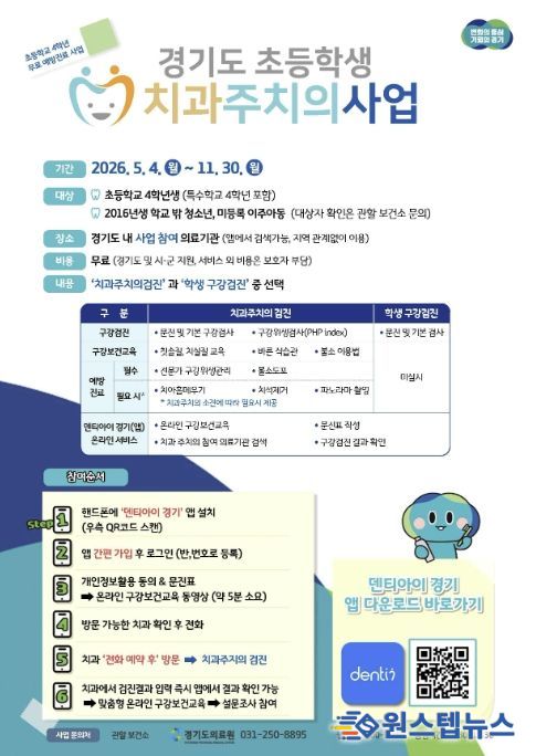 원스텝뉴스 이병희 기자 | 안산시는 경기도와 협력해 관내 초등학교 4학년 학생을 대상으로 ‘초등학생 치과주치의 사업’을 추진한다고 27일 밝혔다.