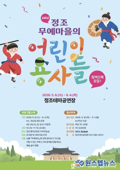 원스텝뉴스 이병희 기자 | 수원문화재단 정조테마공연장의 대표 예술교육 프로그램 '정조무예마을의 어린이 용사들'의 상반기 교육이 접수 마감되며 큰 호응을 얻고 있다.