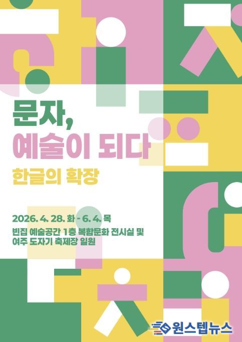 이순열 여주세종문화관광재단 이사장은 “이번 전시는 한글의 조형성과 예술적 확장 가능성을 현대적으로 풀어낸 기획전”이라며 “앞으로도 지역 자원과 예술을 결합한 다양한 전시를 통해 시민의 문화 향유 기회를 확대해 나가겠다”고 밝혔다.