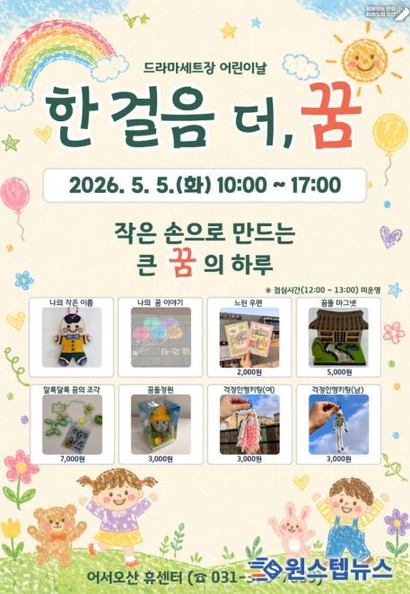 원스텝뉴스 이병희 기자 | 오산시는 오는 5월 5일 어린이날을 맞아 오산 드라마세트장 일원에서 어린이와 가족이 함께 즐길 수 있는 체험 프로그램 ‘한 걸음 더, 꿈’을 운영한다고 밝혔다.