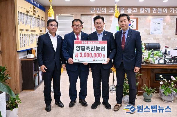 이에 전진선 양평군수는 “지역 축산농가를 위해 노력하는 양평축산농협의 따뜻한 나눔에 깊이 감사드린다”며 “축산인들의 따뜻한 마음이 지역사회에 큰 힘이 될 것”이라고 밝혔다.