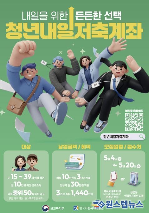 원스텝뉴스 이병희 기자 | 부천시는 일하는 저소득층 청년의 안정적인 사회 정착과 자산 형성을 지원하기 위해 ‘2026년 청년내일저축계좌’ 신규 가입자를 5월 4일부터 5월 20일까지 모집한다.