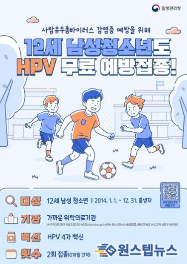 2026년 기존 HPV 예방접종 대상자는 12~17세(08~14년생) 여성 청소년 및 18~26세(99~07년생) 저소득층 여성이었으나, 12세 남성 청소년(14.1.1.~ 14.12.31. 출생)까지 대상이 확대돼 신규 대상자는 오는 5월 6일부터 국가 예방접종을 받을 수 있다.