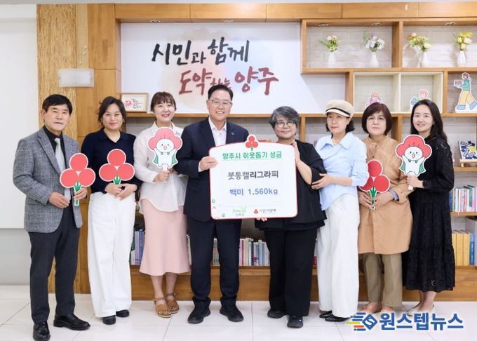 원스텝뉴스 이병희 기자 | 양주시는 지난 24일 시장실에서 붓통캘리그라피로부터 이웃돕기 성품으로 백미 1,560kg을 기탁받았다고 밝혔다.