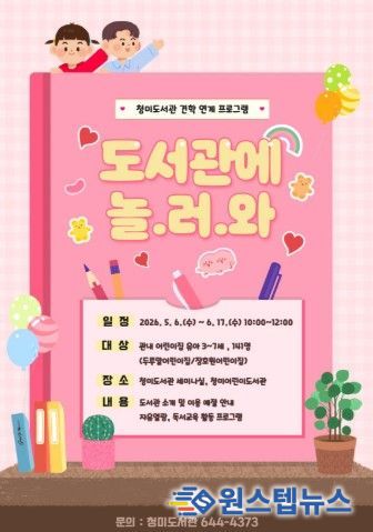 원스텝뉴스 천규영 기자 | 이천시 청미도서관은 오는 5월 6일부터 6월 17일까지 관내 어린이집 유아를 대상으로 도서관 견학 연계 프로그램 ‘도서관에 놀.러.와’를 운영한다.