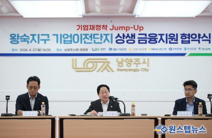 원스텝뉴스 이병희 기자 | 남양주시는 27일 왕숙신도시 개발로 이전이 필요한 기업의 안정적 재정착을 지원하기 위해 ‘왕숙신도시 기업재정착 점프업(Jump-up) 상생금융’ 업무협약을 체결했다고 밝혔다.