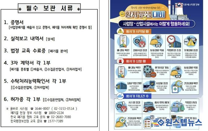 이번 홍보물에는 ▲미세먼지 저감을 위한 실천 수칙 ▲황사발생대비 사업장 행동요령 등이 수록됐다. 특히, 폐기물관련사업장에 대해 관련 서류를 상시 관리해야 하는 실무자들의 업무 편의를 고려해, 실무에 즉시 활용할 수 있는 ‘행정 지원 도구’로서의 기능을 강화하는데 중점을 뒀다.