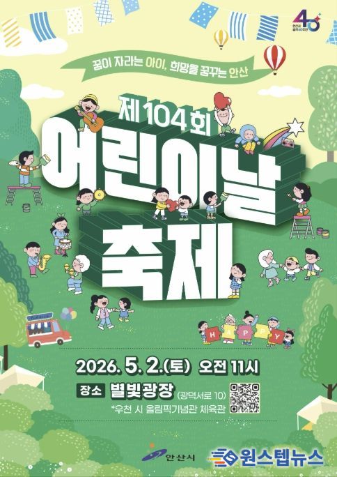 원스텝뉴스 천규영 기자 | 안산시는 다가오는 어린이날을 맞아 온 가족이 함께 즐길 수 있는 ‘제104회 어린이날 축제’를 별빛광장에서 개최한다고 28일 밝혔다.